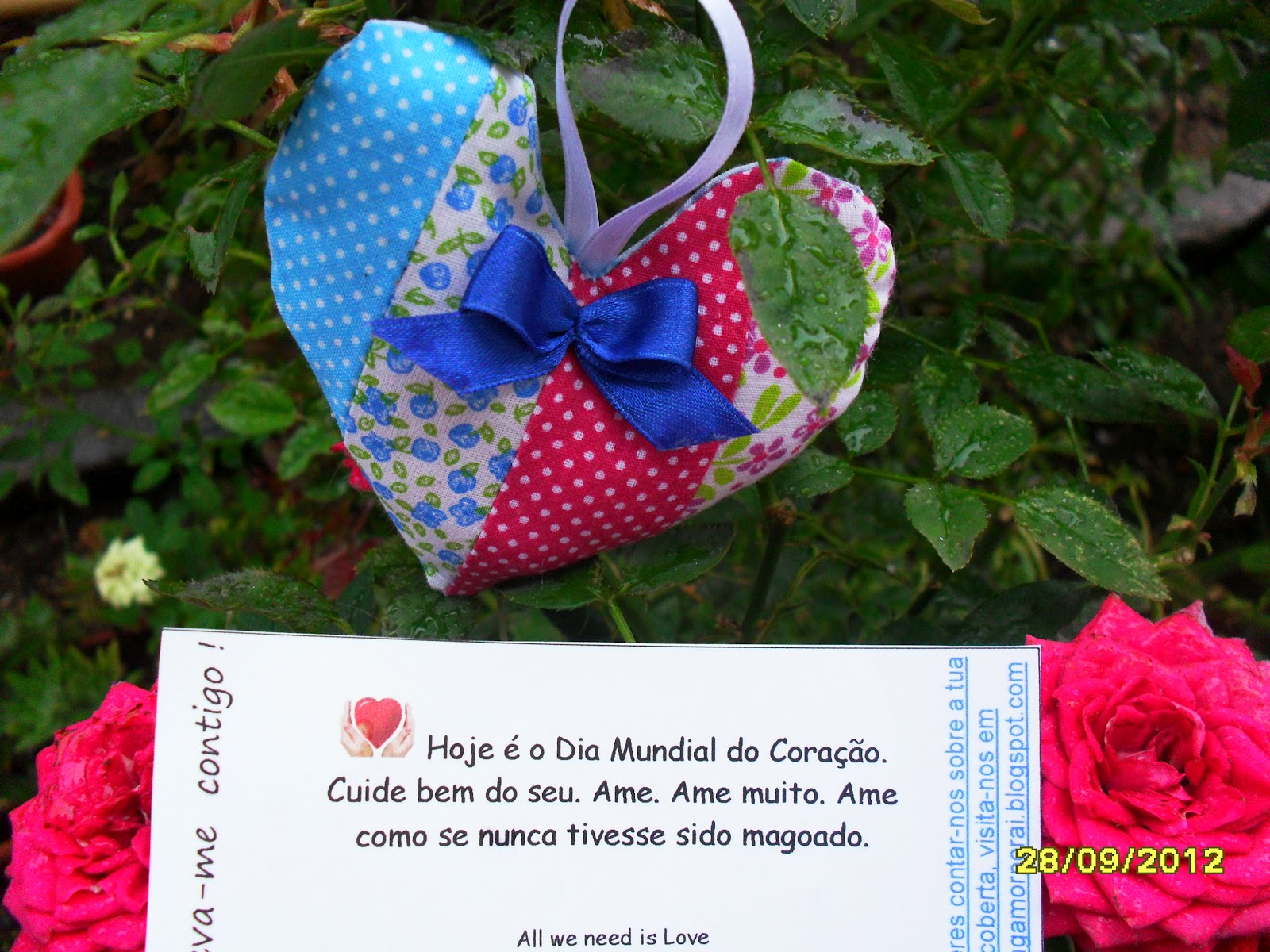 A ideia nasceu há muito... Oferecer algo a alguém desconhecido sem pedir nada em troca... ...Só porque sim! Os meus filhos foram crescendo com as várias formas que a ideia vai tomando e são parte activa (e entusiasta) dela. Agora "soltamos amor" (como diz o mais novo) em forma de corações que desenho, recorto e coso em pedaços de roupa que já não serve. Se encontraste um coração nosso, deixa aqui uma palavra. Vamos gostar de saber dele! All we need is LOVE! Liliana Lima