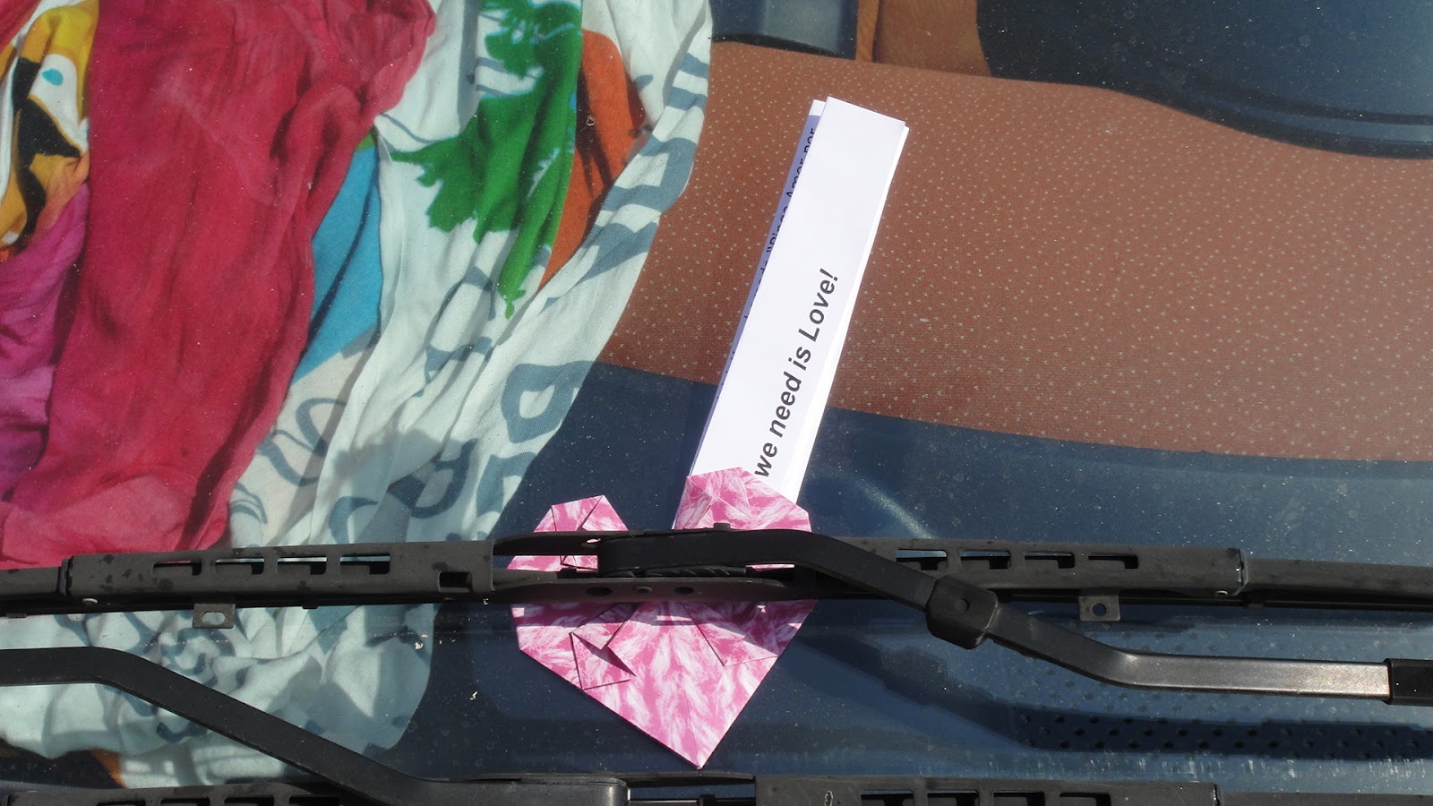 10:46, na histórica vila de Monsaraz, em pleno Alentejo, foi largado um coração de origami, com um padrão de lã cor-de-rosa, condizente com o pequeno automóvel smart, que se encontrava bem colorido no seu interior.