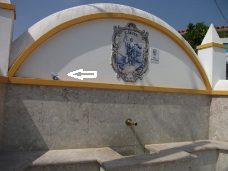 Como sabia que lá ia passar hoje lembrei-me de levar um Pinga Amor. Deixei o coração numa fonte que lá há no centro da freguesia. A água é potável e muito fresquinha. Achei que um pingo que falava do mar ficava ali bem. E pensei que um pingo de amor numa população que mal dormiu toda a semana, com medo do fogo, poderia trazer um sorriso e promessa de melhores dias.