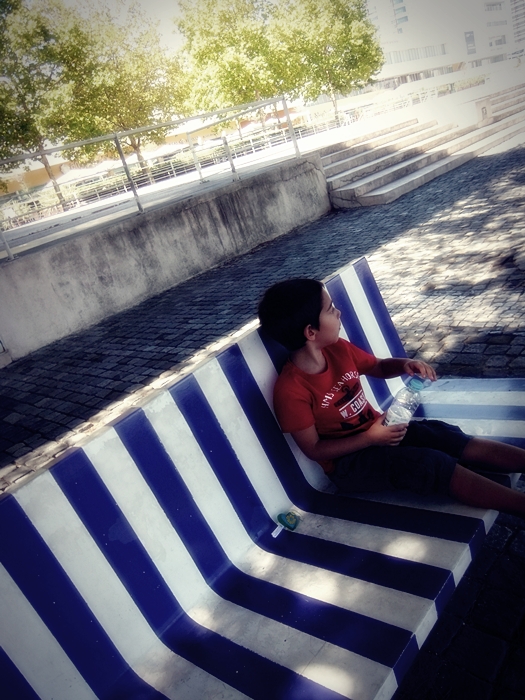 Após o aluguer do triciclo, e antes de ir para casa, decidimos e caminhar pela ponte entre o Pavilhão Atlântico e o Oceanário....
