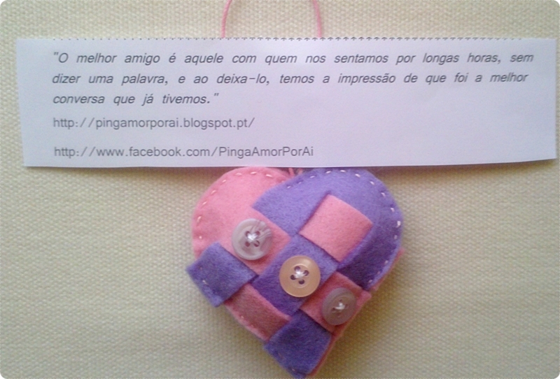 Eu adorei a ideia dos pingos entrelaçados e vou tentar fazer um desses essa semana...no capricho dos detalhes conseguimos ver quanto carinho há nos corações distribuídos! :) Um abraço!